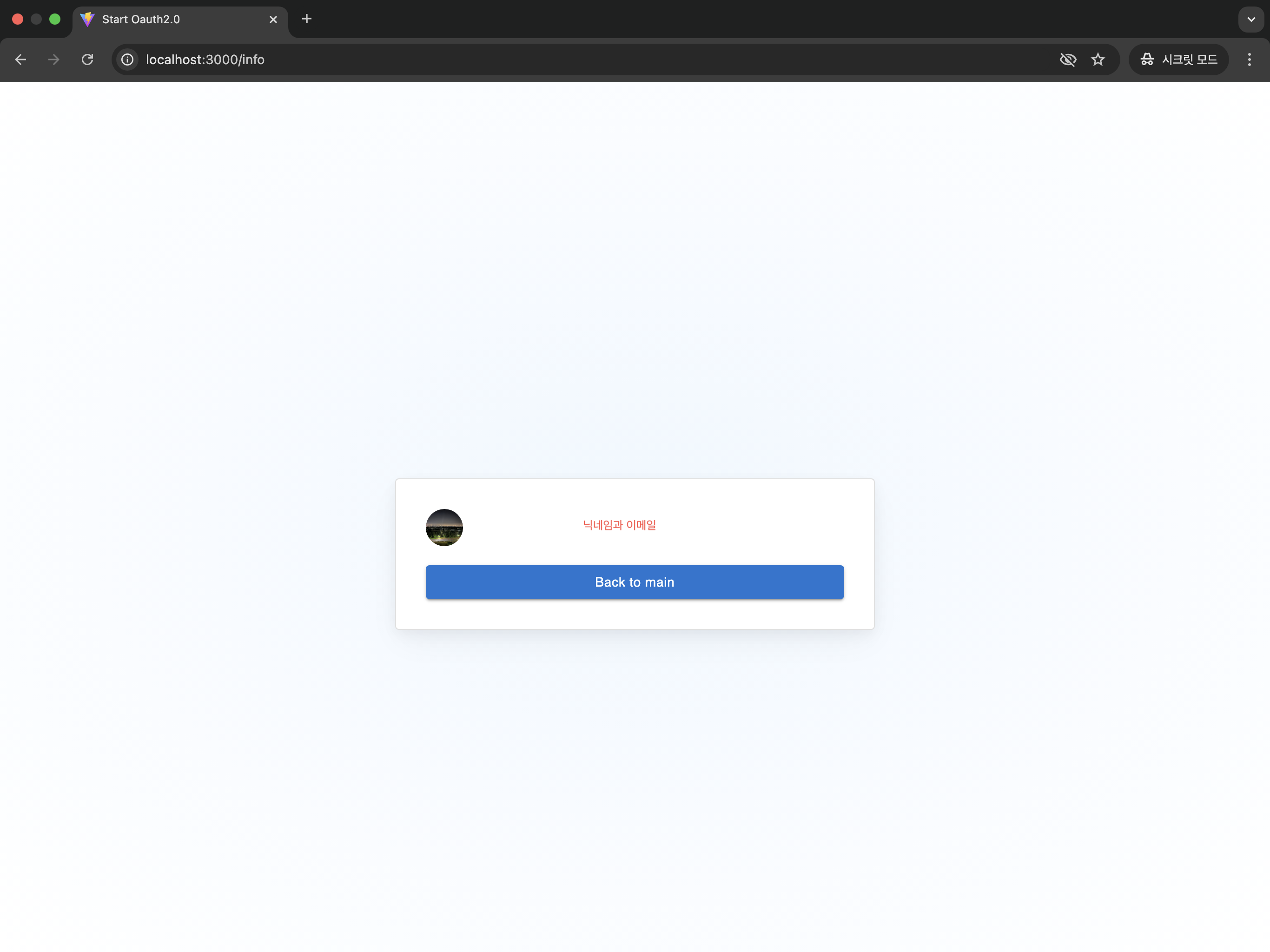 앞서 언급했듯 이번 포스팅에서는 소셜로그인을 지원하며 로그인하게되면 로그인한 아이디의 회원 정보(프로필 사진, 이메일, 이름)을 보여주는 간단한 프로젝트이다.